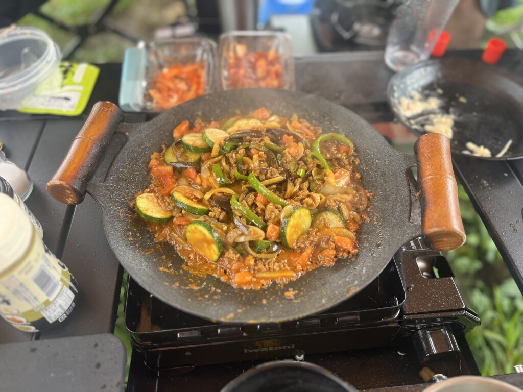 友人や社内のメンバーで行くことが多く、最近では仕込みの料理や現地で作成する料理にも力が入ることが多いです。