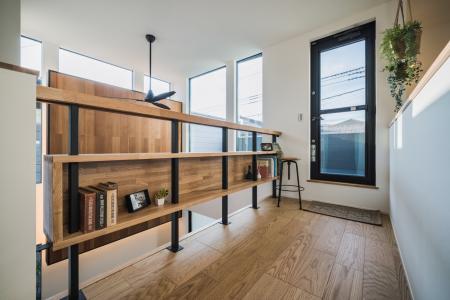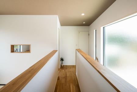 事例は右側が階段室、左側が吹抜けになっていてブリッジのような空間になっています。