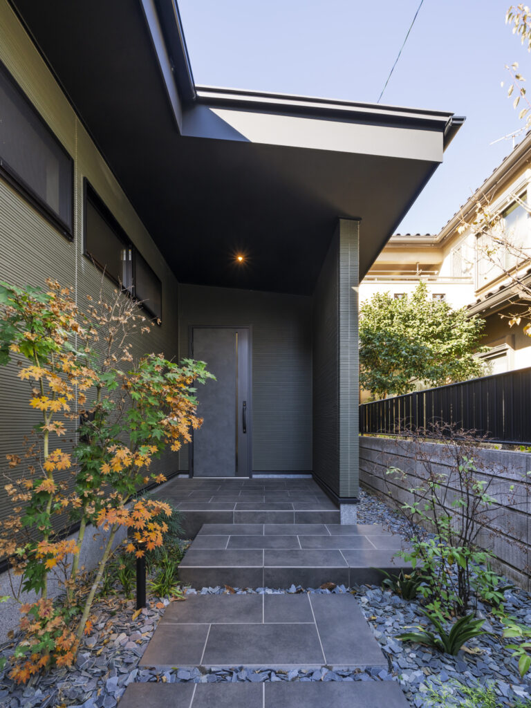 ダイニングから繋がるテラスには植栽を配置し、ダイニングにいても安らぎを感じることが出来るようにしています。また、ワンちゃんやお子様と一緒に暮らす方もテラスを楽しめるようにシャワー付きの立水栓を設けています。一部には屋根を計画していることで雨の日でも過ごしていただけます。